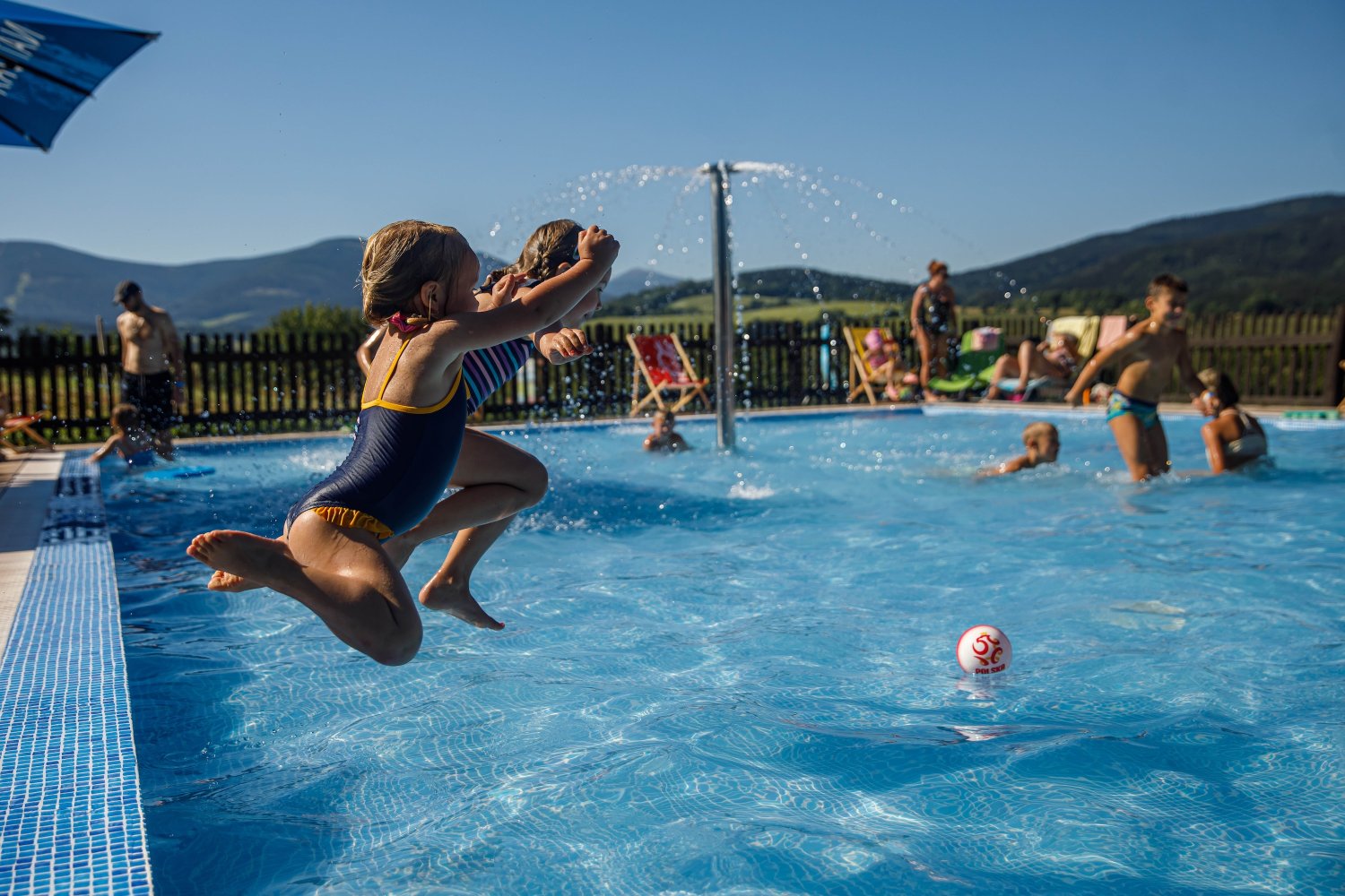 Láká vás osvěžení? V areálu Hříčky Buky najdete přes léto venkovní bazén se slanou vodou – šetrnější alternativu k běžnému chlorování.
